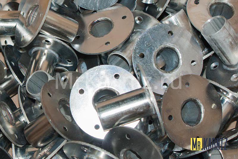 Мы отвели специальный участок на нашем производстве под изготовление креплений, которые также входят в комплект. Данное крепление изготавливается для каждой модели индивидуально, однако диаметр его прилегания к стенке (с учетом декоративного отражателя) стандартный - 70мм. Крепление входит в несущую трубу изделия без зазора, что значительно упрощает монтаж конструкции, избавляя от необходимости производить крепление к потолку.